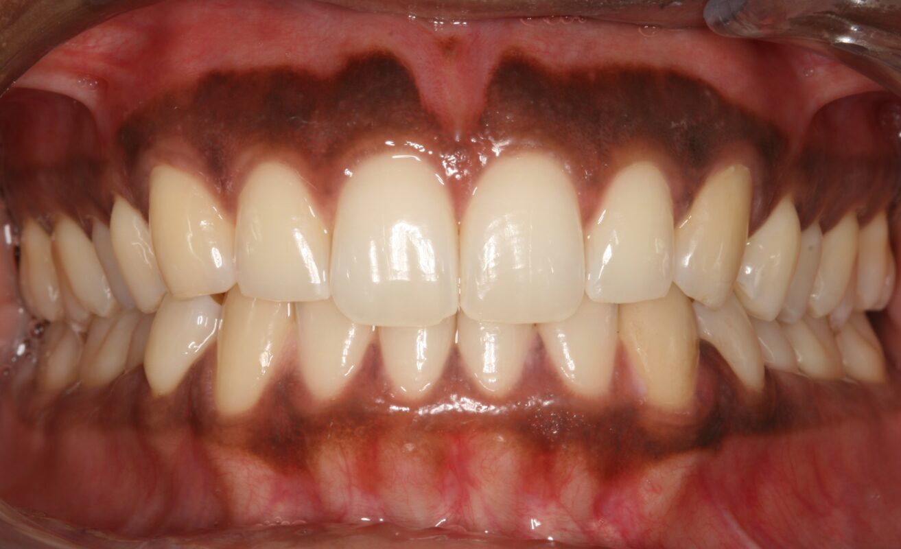 该病例采用先进的牙龈脱色术治疗严重的黑色素沉着,恢复均匀、健康的粉红色外观。手术消除了上下牙龈的黑色素沉着,显著提升了整体笑容的美感,增强了患者的自信心。